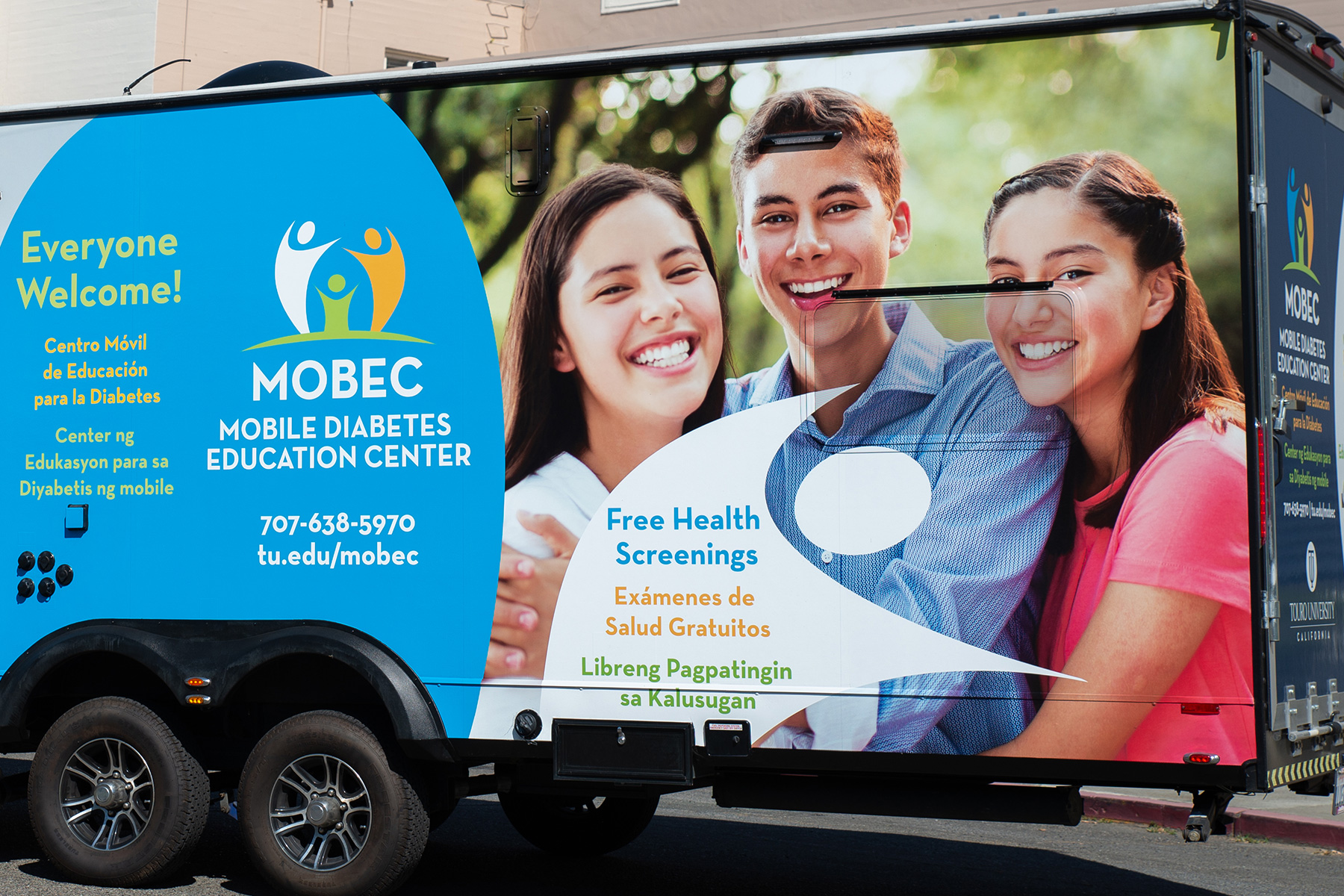 The Touro University California's Mobile Diabetes Education Center (MOBEC) is a state-of-the-art mobile trailer that brings FREE diabetes screening and education to the people of Solano County. We provide not only diabetes screening for members of the community who may not otherwise have adequate access to healthcare but also education to the public about their risk factors, thus aiming to prevent diabetes and prediabetes in their lives.